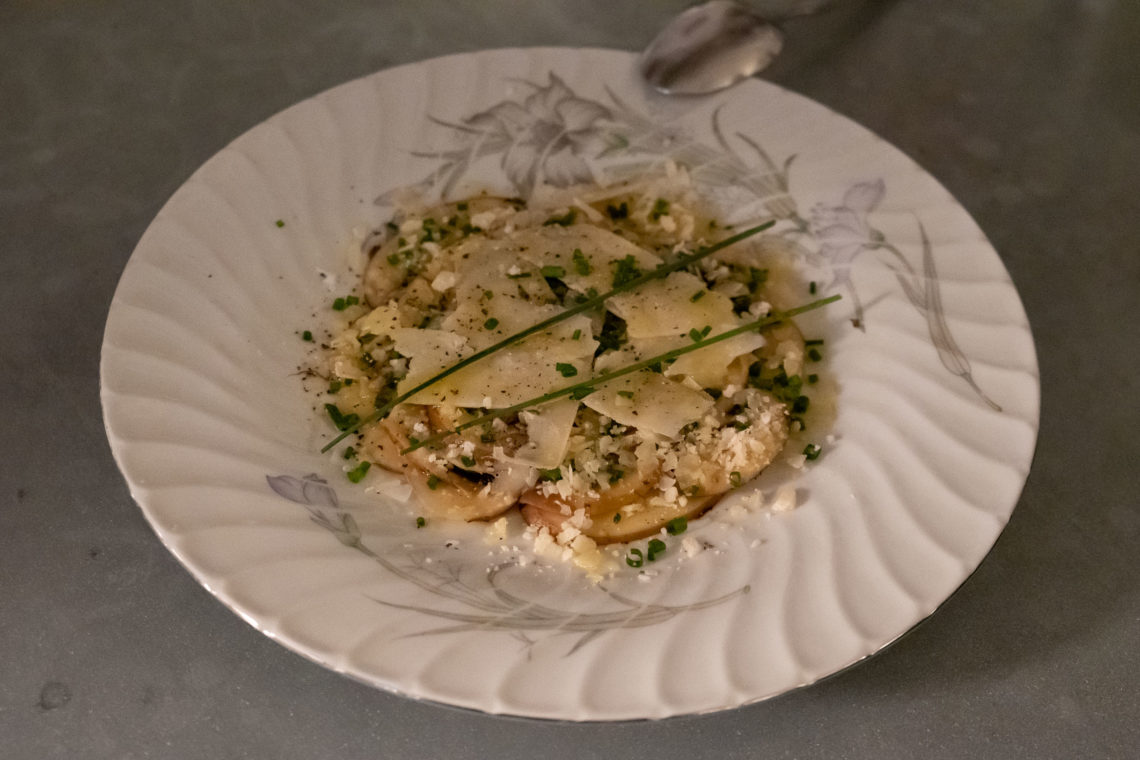On my last return I noticed that same sensation I described in my first blog post about La Mirona. The memory of a meal at the house of Italian friends. Maybe it was the mushroom carpaccio with parmesan that brought back the picture of long sunlit days with excellent food. Yet it was only the first of more delicious dishes to come.
