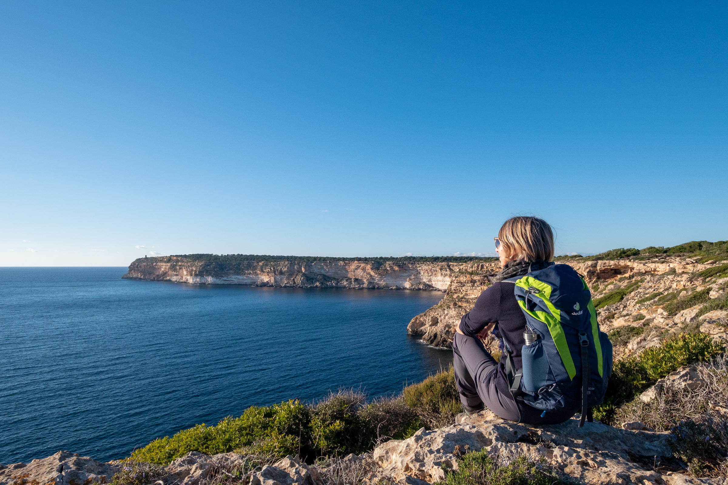 The hike from Cala Pi to Cap Blanc begins right behind the boat house. Heading towards the white cliffs in the distance that gave name to the cape. Across the garrigue with its crooked bushes, small blossoming flowers and trees bent by the wind. Maybe you spot one of the shy turtles in their natural habitat. At Cap Blanc make sure to enjoy a break in the lee of the ancient watch tower by the lighthouse.