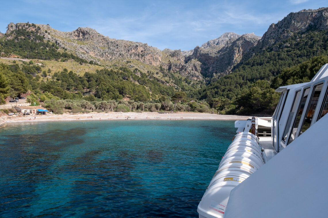 Sometimes rides are cancelled on short notice due to unexpected weather conditions, though. If you don’t want to take this risk, you can make the tour in the opposite direction. Starting with the boat from Port de Sóller to Cala Tuent in the morning and hiking to the Mirador de Ses Barques. Also a great place to end the hike. Especially since the vista from the restaurant over the bay of Sóller is spectacular. ![]()