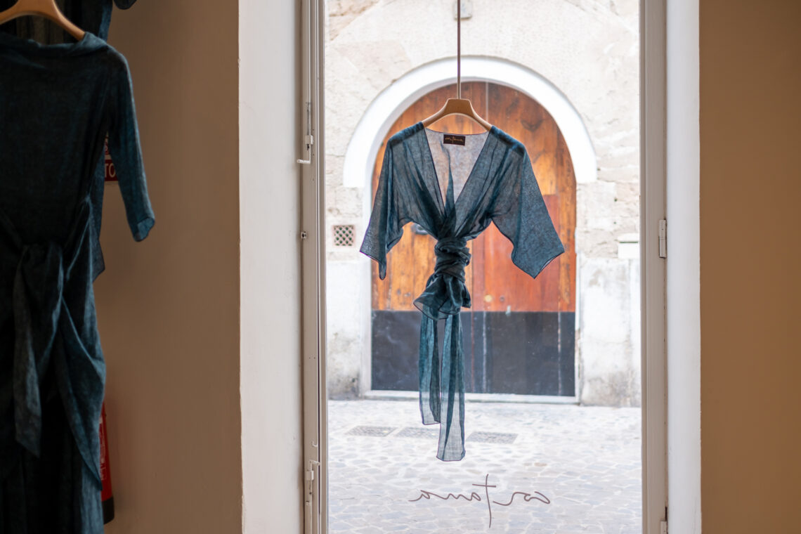 Behind the big windows of a magnificent city palace an enchanted dance unfolds and captivates you instantly. Dresses are hanging on delicate metal rails like the costumes of a ballet. The Cortana store in Palma radiates lightness and sublime beauty. A genuine showroom that resembles an art gallery rather than a fashion store.