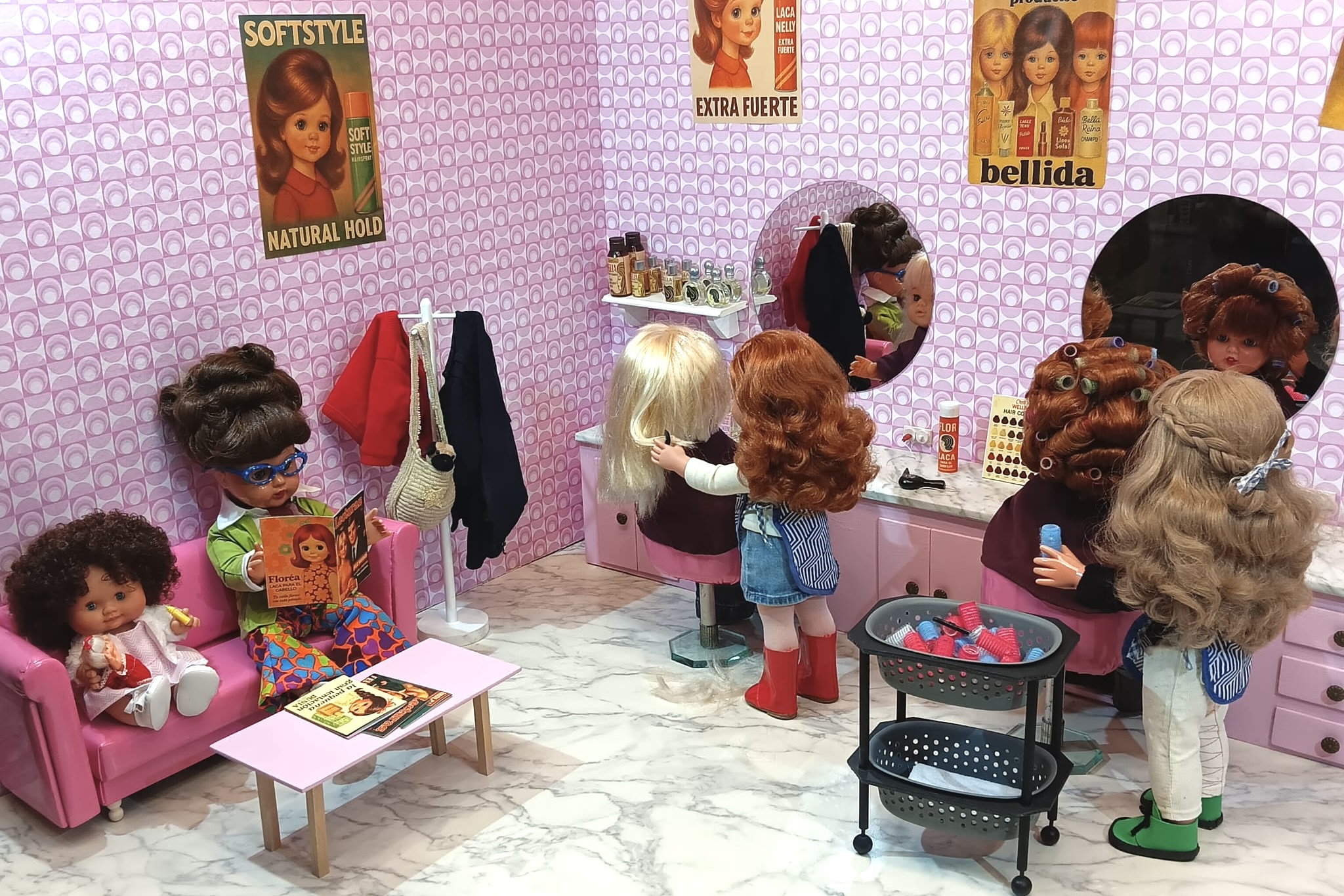 It is always a highlight when the large shop window is elaborately decorated for Christmas. Each year dedicated to a different theme. This time, it’s the hair salon. Washing and cutting, styling and blow-drying, the miniature salon at La Industrial has it all. Including reading materials and posters with the latest hairstyles.